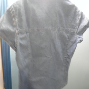 Brand: No idea, but the tag has some kind of donkey on it if that rings any bells?... Colour: Light denim...Condition: Excellent...Value: 5-10$ Buttoned up blouse. Looks like jean jacket but is actually made of a lighter cotton fabric. 2 usuable pockets. Women fit (front and back darts). Not new but in excellent condition. Was given to my mother as a present, but she never wore it, then gave it to me years later, and I decided to swap it since it's too big for me:P