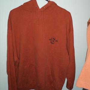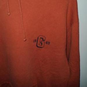 Men's M Orange Pullover Hoodie from Gap (fits ladies L/XL) Has blue logo (19 G 69) on left chest very comfortable, in great shape