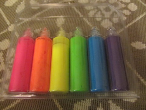 Set of blacklight paints, used only very slightly. Neon colors, glows under blacklight!