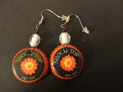 Handmade by me! Earrings made of recycled bottle caps, and black light paint! Any questions, please ask!
