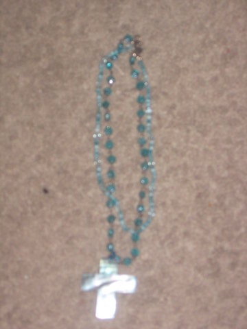 Express Aqua/Turquoise Beaded Necklace With Cross