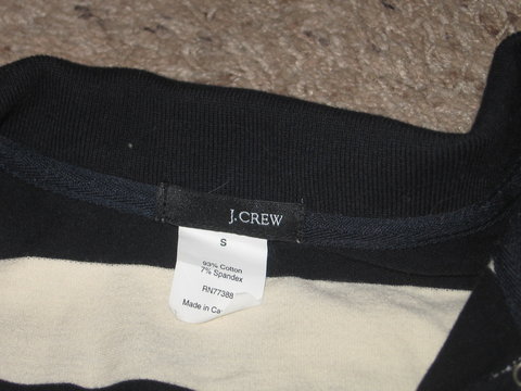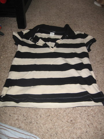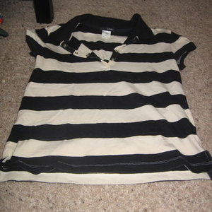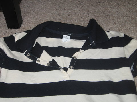 Small - snap close. Navy and white stripes. Cap sleeves. Morn maybe once. Not really my style anymore. No stains, tears, signs of use. Looks new.