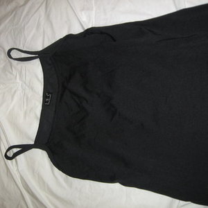 Cute black tank w/soft fabric. Great for working out or can be casual to dressing. NOt sure what the fabric is called, but it slightly shiny.
