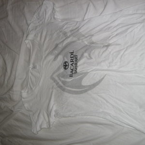 Cute tee shirt only worn once. Size Large but fits more like a M/L. Longer fit. Bacardi logo across front (see picture). Really cute shirt, just wish it fit me. Shirt material is super soft and comfortable.