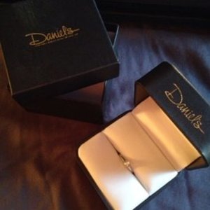 Worn for 9 months, wedding didn't pan out... I kept the ring. From Daniels Jeweler. Original price was $699.99. 14K Gold and Diamond. Near colorless. Royal quality. Size 7, can be resized. Diamond is 1/4 caret I believe.