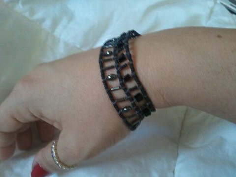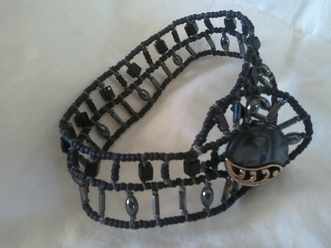 Weaved wire black beaded bracelet. Seed beads and hemitite beads with a button closer. Retails for around $50.00 Note: Most of the jewelry I have here is made by me, and if you are an artist, you value someone elses art. Please keep that in mind when making me offers.