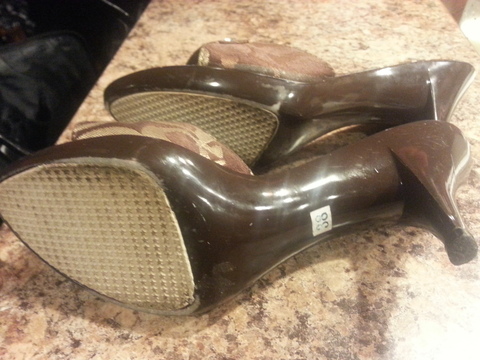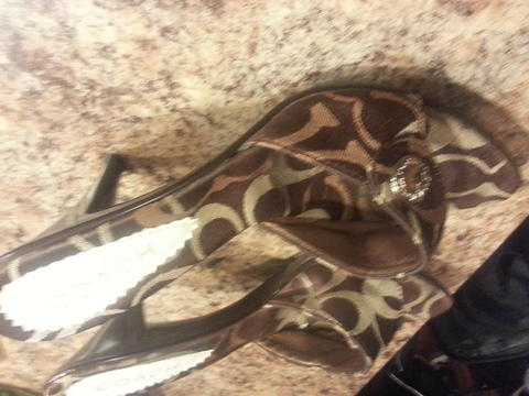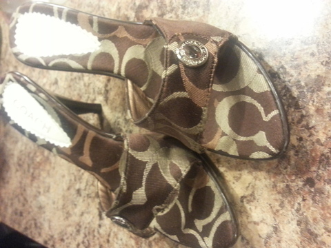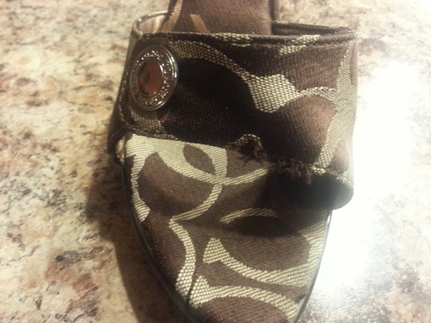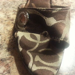 These are beautiful bit a bit too small for me :( gold button accent and classic C design in shades of brown. Would mark excelent but a bit of pilling by the toes. Very classic looking sandal/mule