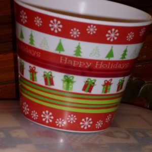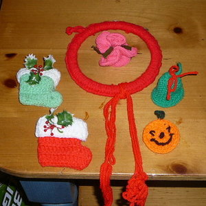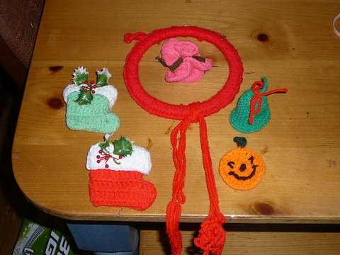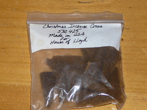 1. metal 2. handmade decoration 3. Christmas Incense Cones- only used one long time ago, other than that been in my Christmas box- don't know if it has a fragrance smell or not and there are 11 in the bag 4. have all except red round thing 5. small plastic bucket 5. hard plastic holder