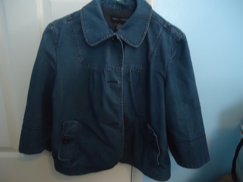 Larry Levine Jean Jacket L. Worn only once. Come from a non-smoking and pet free home. NO INTERNATIONAL OR P.O. BOX SHIPPING.