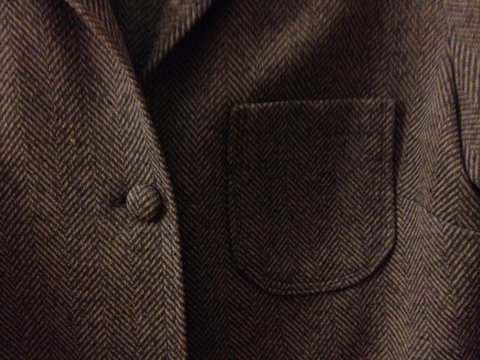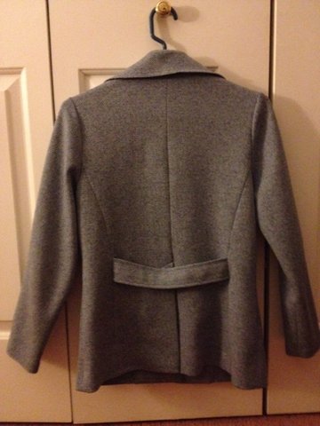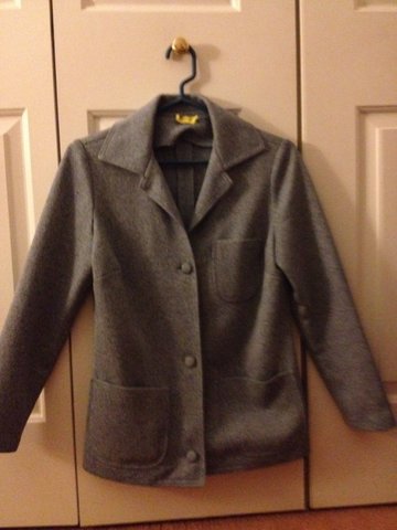 Awesome peacoat, custom made by a local seamstress. Made of blue and grey tweed, with single buttons down the front. My little cousin said she imagined a news reporter wearing it, and I can kind of see that :) I'd keep this but the sleeves are too short on my now. Boo :/ I hope it finds a good home! (The little yellow tag is from the dry cleaners.)