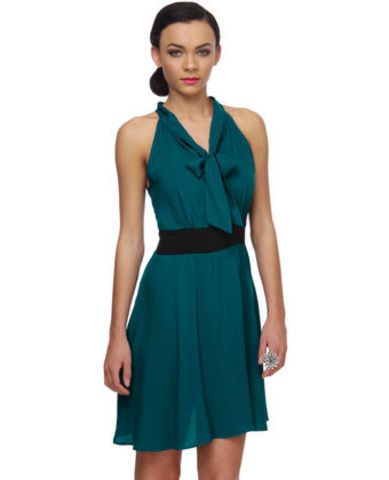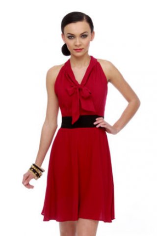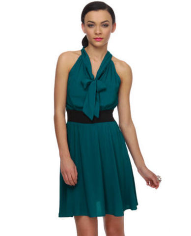 Brand new, with tags. I just didn't like the way it looked on me. Worth $40 and currently, Lulu's stopped selling this in red. The pictures of the green dress are just so you can see the rest of the dress :)