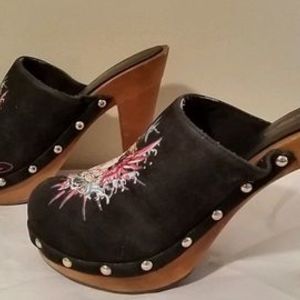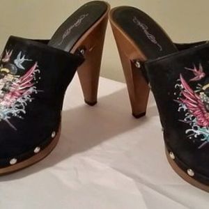 Size 9 women's Ed Hardy must have summer shoe!!! Great condition, hardly worn just look at the pictures. Heel height is 4".