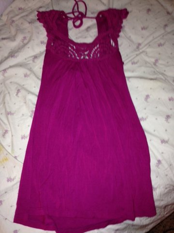 it might be a dress for you if you're short. I'm 5'6 and it goes just barely over my butt. it ties in the back to add a little extra.