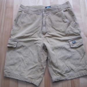 Men's sand dune? colour cargo shorts. Second picture is to give an idea of the colour. May need to be ironed but other than that these are great! P.S. These are different that the other pair I posted.