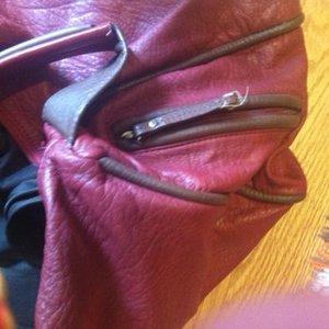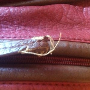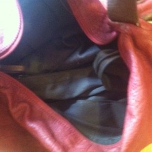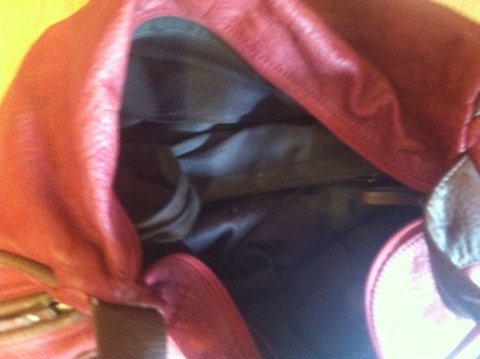 Red Prada Replica bag with a few minor flaws but in otherwise great condition- the main flaw is on one of the zippers which is depicted in the pictures (my puppy chewed the leather on the zipper). This is a very large handbag!