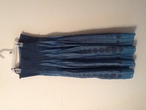 Blue silky summer dress with chocolate brown design. Perfect casual dress for hot summer days! One size fits all.