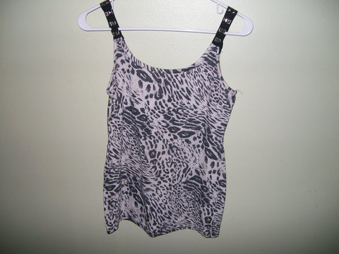 Hardly worn, black and white (snow) leopard print tank top with black straps that have two rows of metal studs.