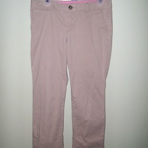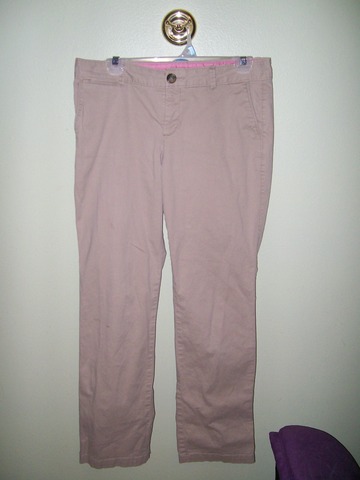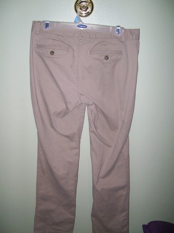 Worn once then I like grew out of them. Dockers brand, tan/dark beige with the slit back pocket style. Great work pants.