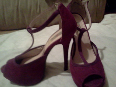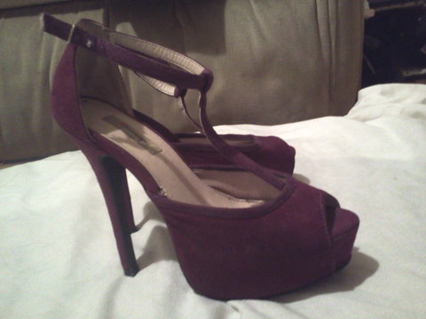Plum heels. matte. about 4 in. no size on shoe but are definitely 7- 7 1/2