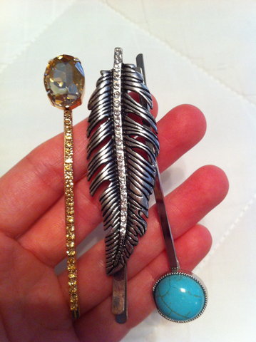 I bought these thinking they'd work with my pixy cut, but they're, sadly, a little too big for my super-short hair. Very, very pretty pieces that can be worn separately or together. Never worn.