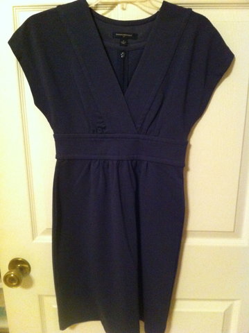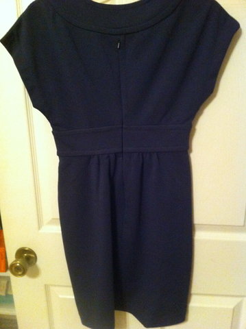 I took the tags off but never wore it. Very pretty flattering shape. Deep purpley blue color.