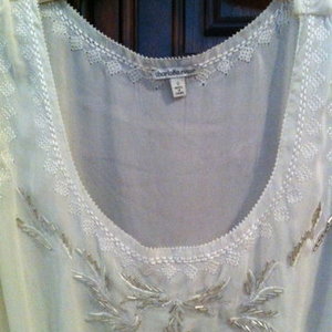 Worn a couple of times, but you can't tell. Looks new! Very pretty detail on the neckline.