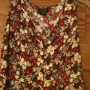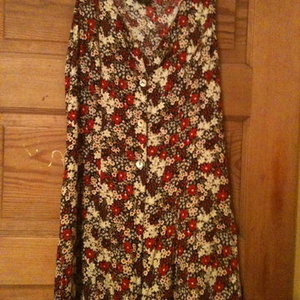 #Here's a vintage floral print maxi dress from a local thrift store. #It's great to style, mix and match with and I'm sure you'd have fun with it. #It's like a long vest, buttons all the way down, hits about ankle length. #Size wasn't printed, probably a small/medium with a expandable band in back. Can be belted!