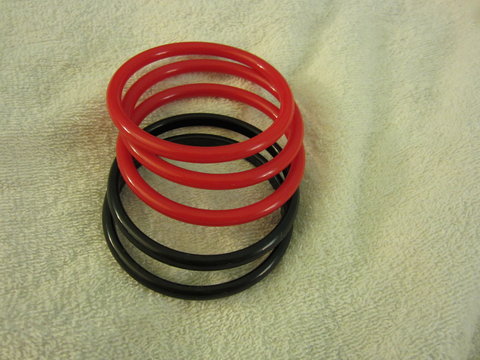 assortment of silver bangles from candies by kohls and black and red plastic bangles