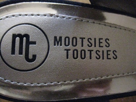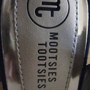 i've only worn these once for a couple of hours. there's a hint of sparkle in the fabric. the heel isn't too crazy (about 2.5"). the brand is "Mootsies Tootsies"