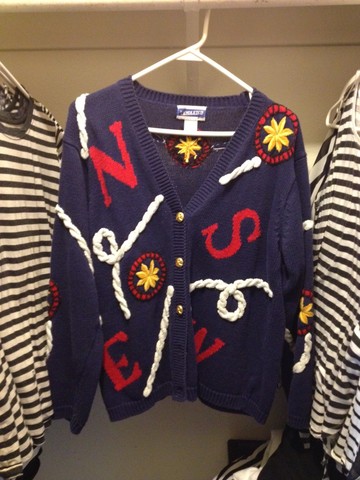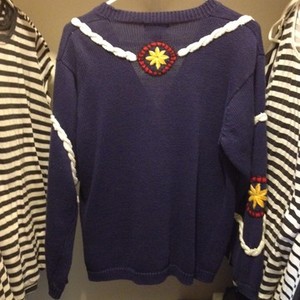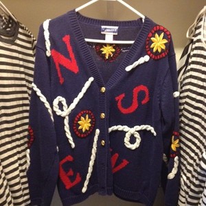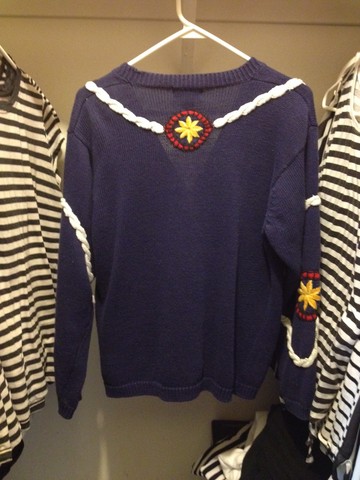 Chunky and warm. Vintage, but in good condition. Really cute patterns throughout. Size Large.