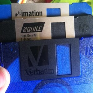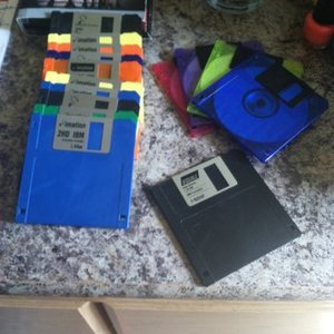 15 assorted color floppy disks. I have no idea if anything is on them or not! I found ten going through some old things! They're all 1.44MB 10 imation, 4 Verbatim, and 1 Quill. I know no one uses these anymore! But I have no use for them, so maybe someone will want them!