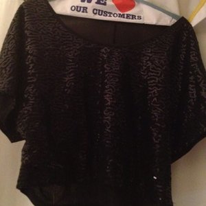 A pretty sequin top- class it up for a work day or fancy it up for a night on the town! It fits a meduim or a large.