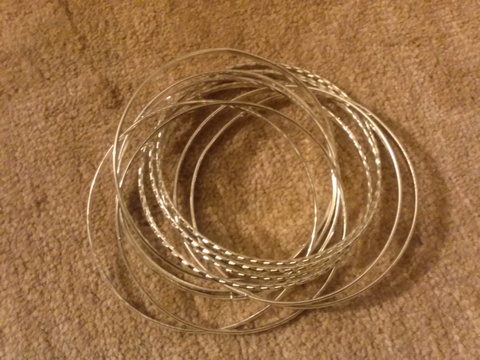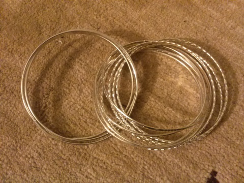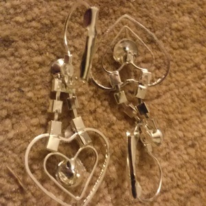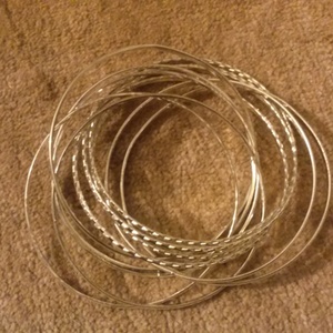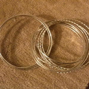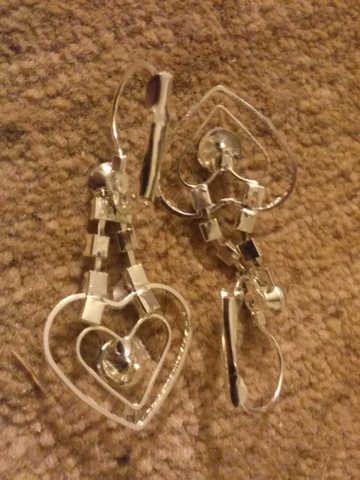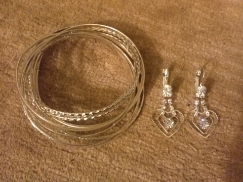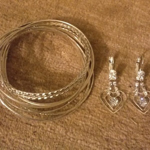 Great condition one piece Bangles, and pierced silver heart earrings. Earrings never used, and no wear or rust on any of them. They go great together, and they are sold as a set.
