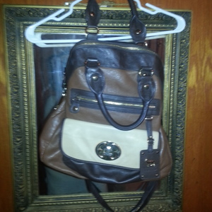 I love this bag!!! The lining is clean and perfect. The outside of the bag is in perfect condition. The bag can be worn two ways, folded over or erect. There is slight wear on the hardwear from normal use. The only reason I put good condition is that one of the leather tabs that hold the detachable cross body shoulder strap has begun to tear (i carried College biology books in it). I am almost positive a leather smith can easily fix it. But you do even need the stap because of the handles depending on the way you want to carry it.