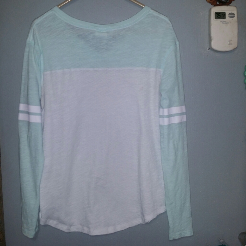 This is a long sleeve v neck varsity tee by PINK in size small. It's gently worn but in good condition.