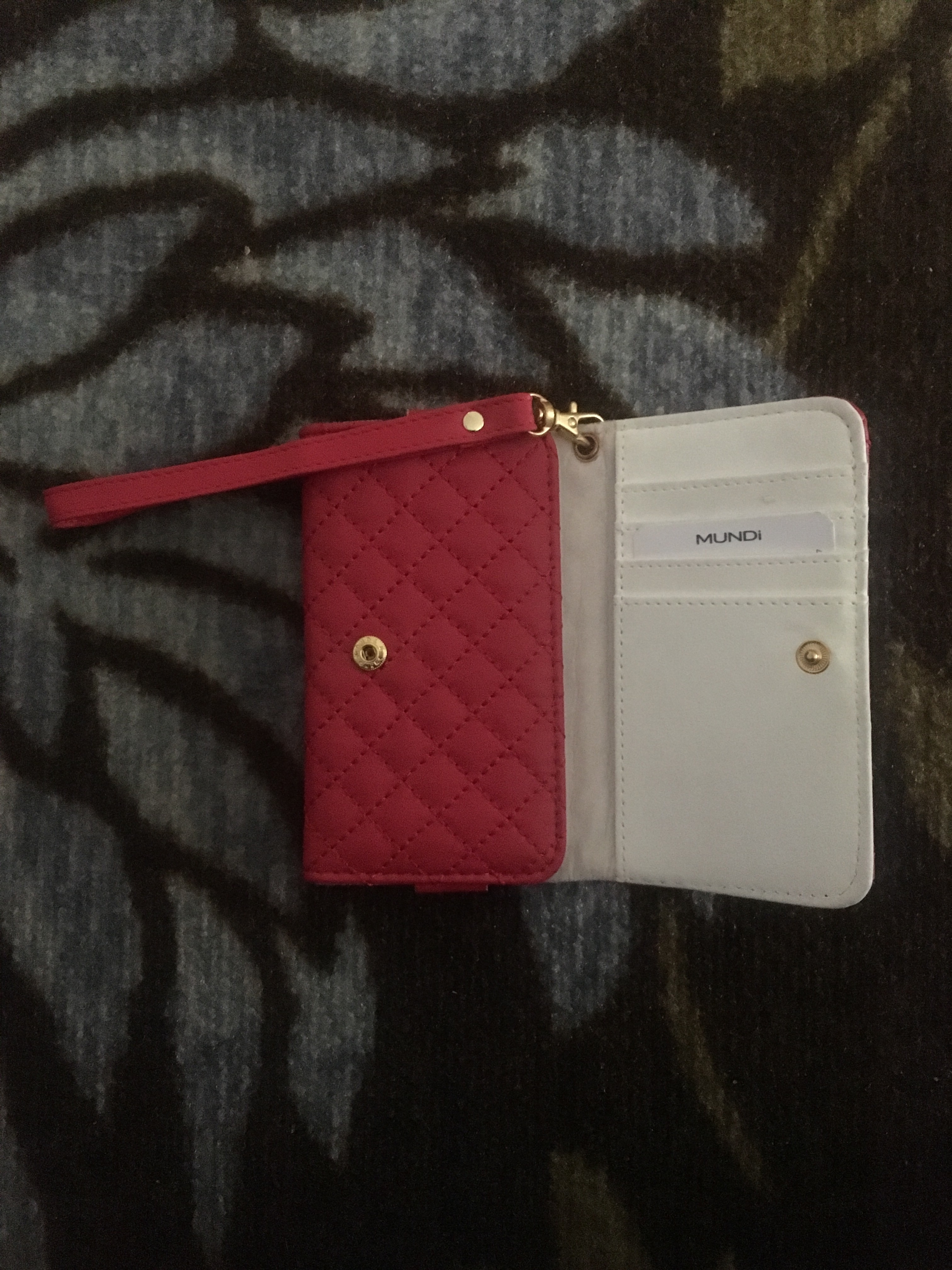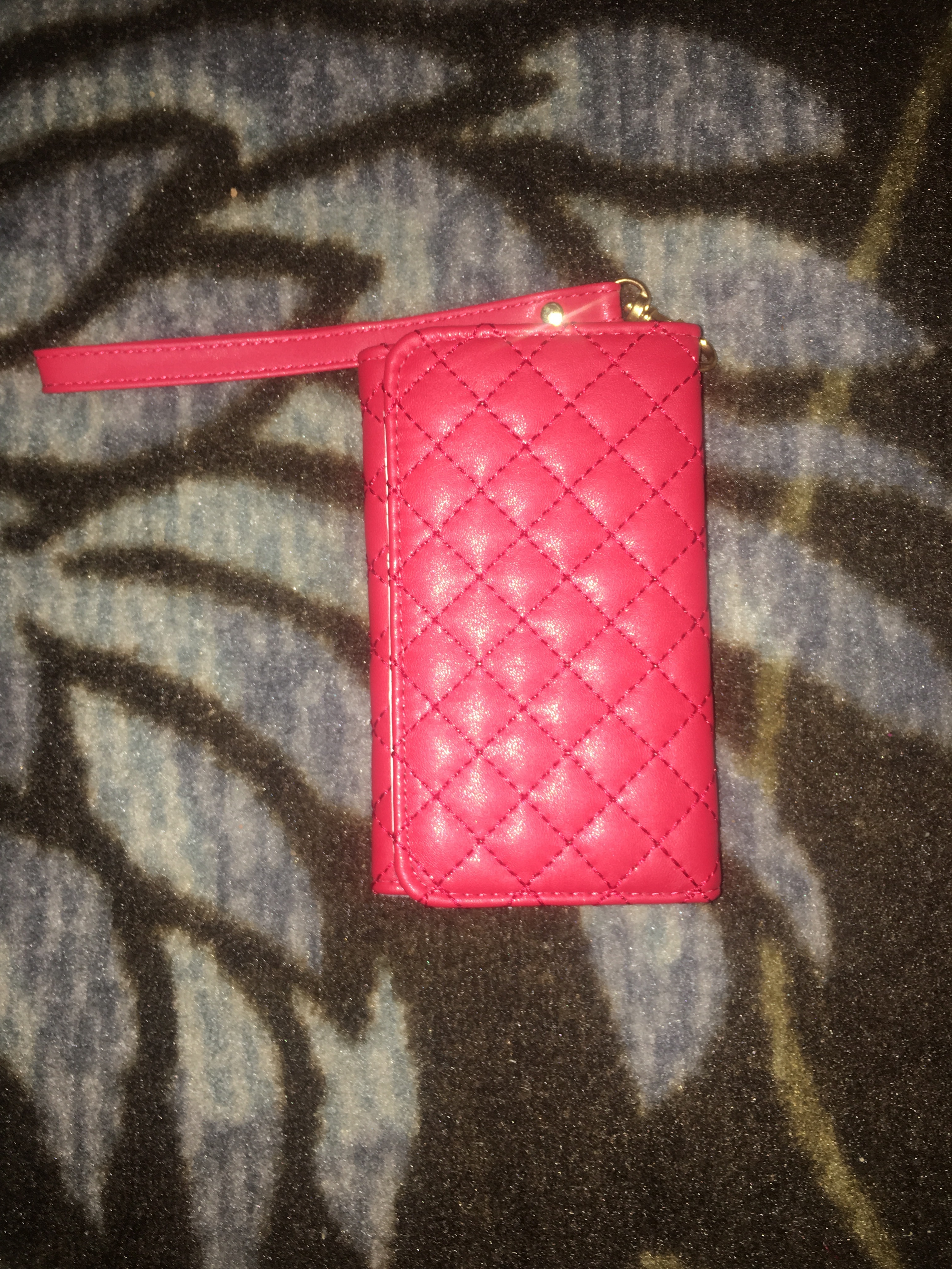 Fits cell phone 5" and below, could also be used just for money and credit cards