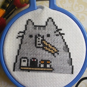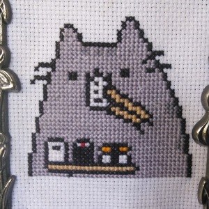 Handstitched Pusheen eating Sushi. Great for cat lovers!