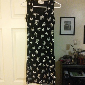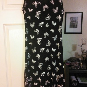 Black and white butterfly dress, stretchy material.