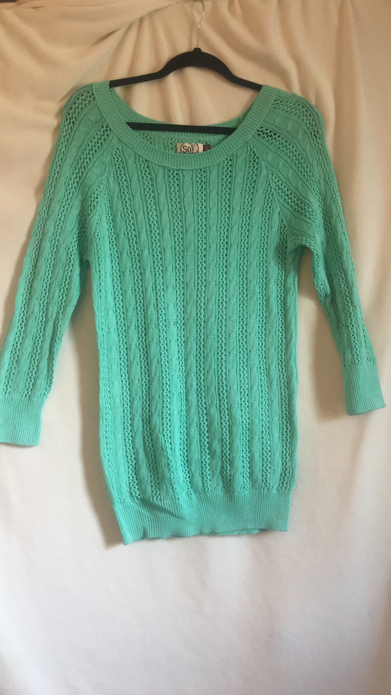 Oversized knit sweater so cute for any season! I normally wear size s/m but bought it bigger . Brand: SO