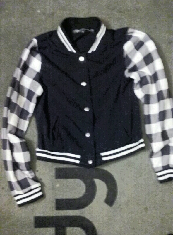 just a simple button down jacket with checkered sleeves, matches almost anything