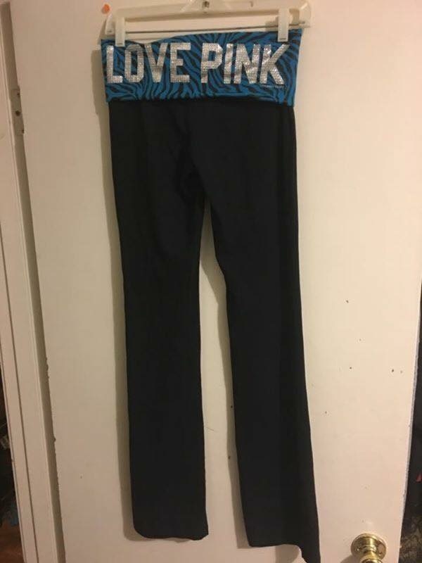 Vs Pink Bling sequined & blue Leopard Yoga Pants-like New-Sz.XS- sooo cute!!! Exc. shape!