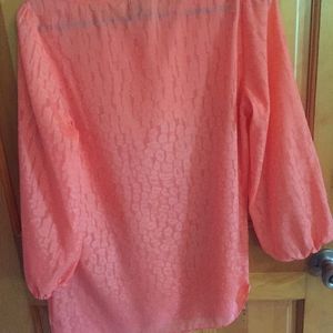 Jaclyn Smith coral/salmon 3/4 sleeve blouse. Size small. Animal print. Perfect with leggings!!
