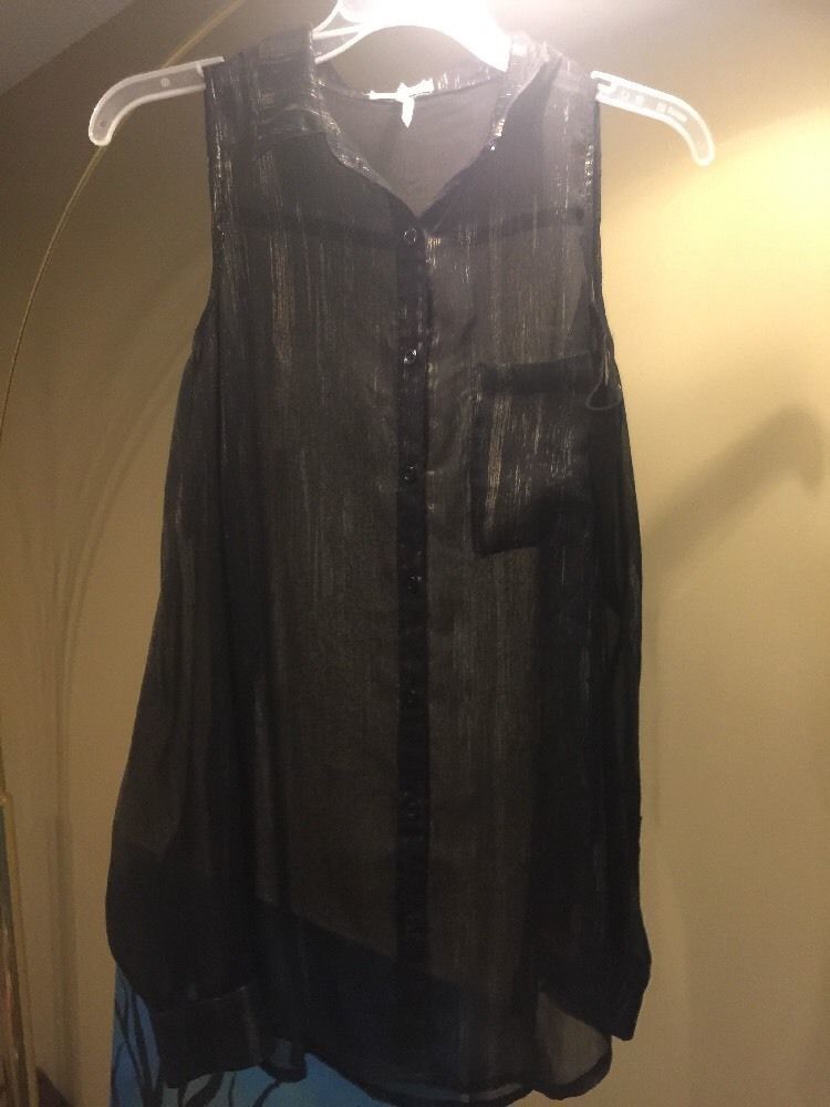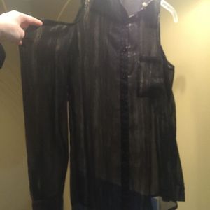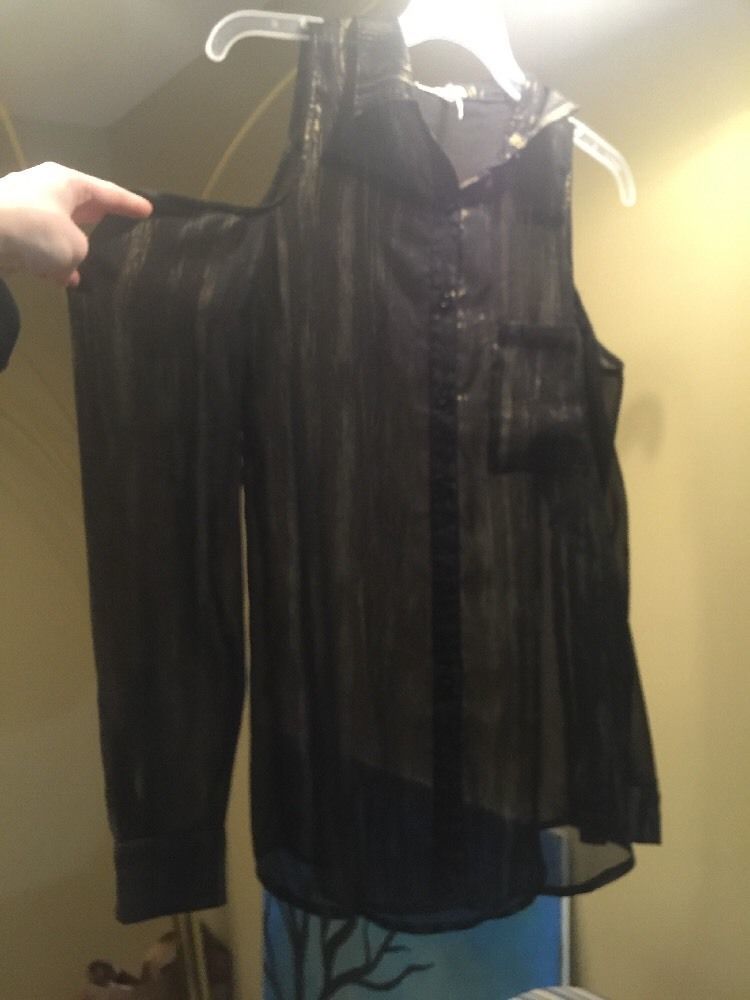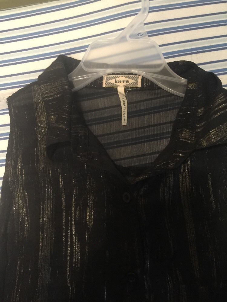 Kirra Black and gold long sleeve button up top size small. Worn once. It is sheer so a cami/tank can be worn underneath