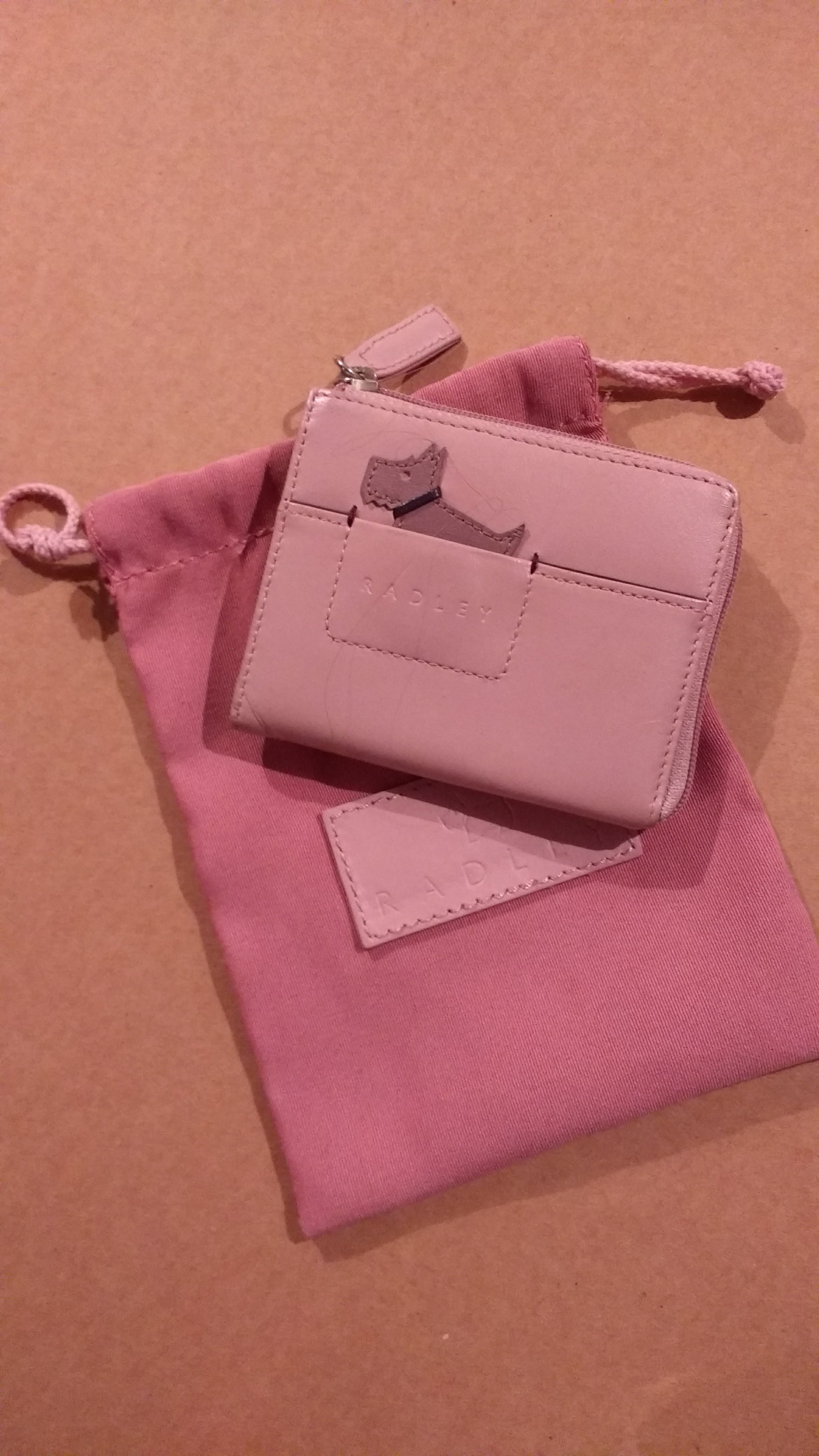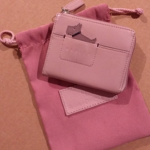 Genuine, real pink leather Radley coin purse with it's original pouch. Perfect gift for a young girl. Size: 3" x 3.5"