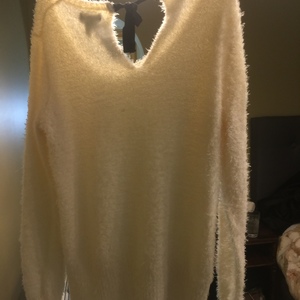 A.n.a. White furry sweater size XL. Just wore it as an oversized sweater. Really soft, great with leggings! Open back with bow