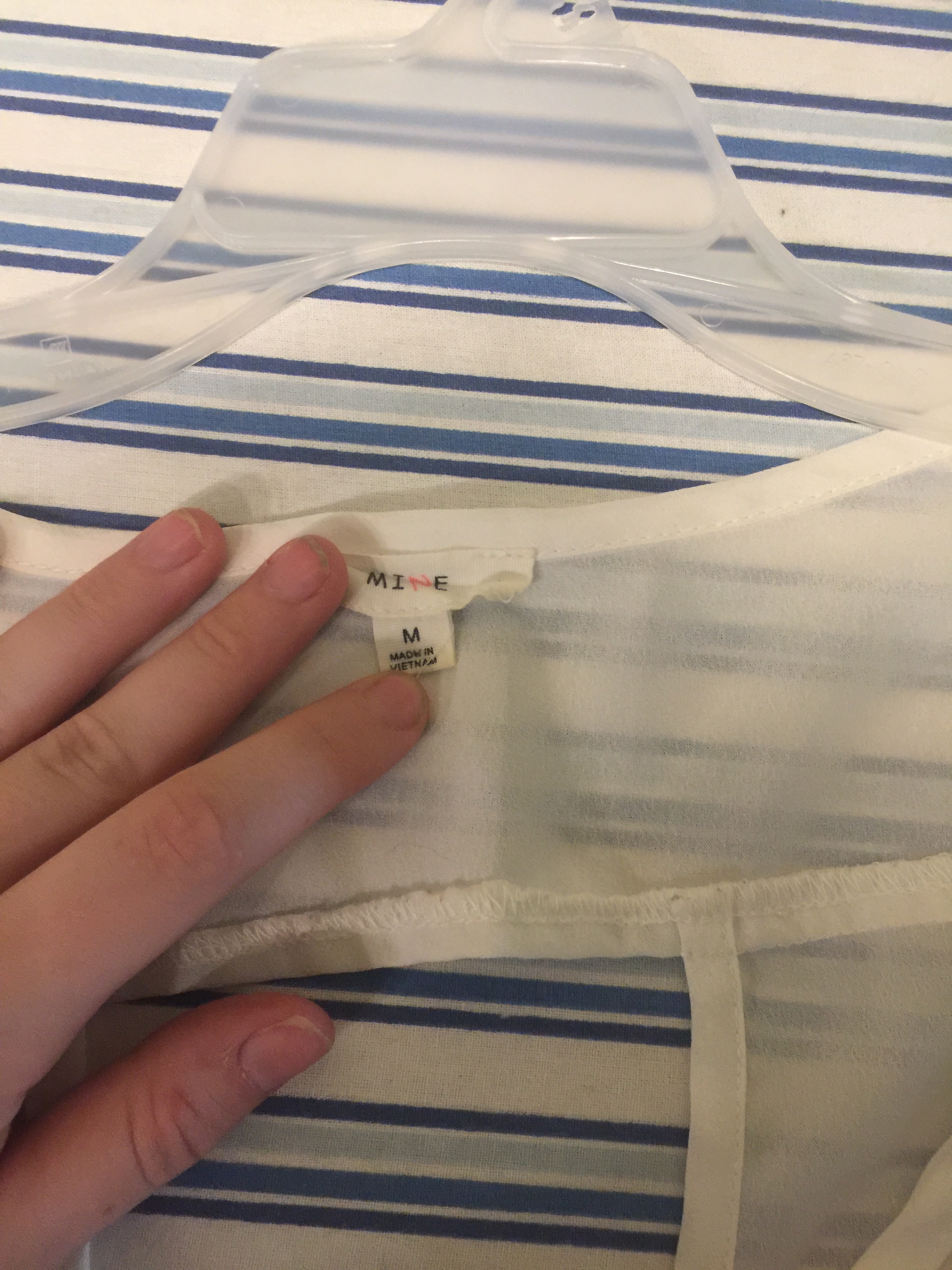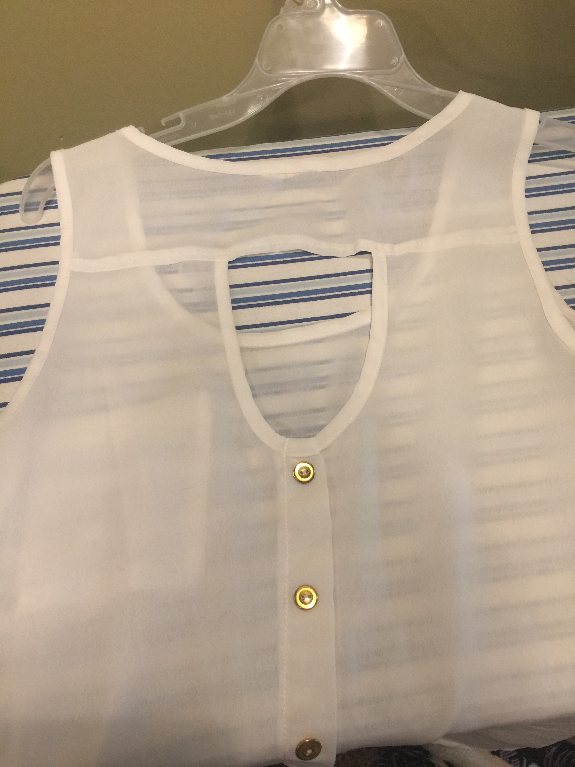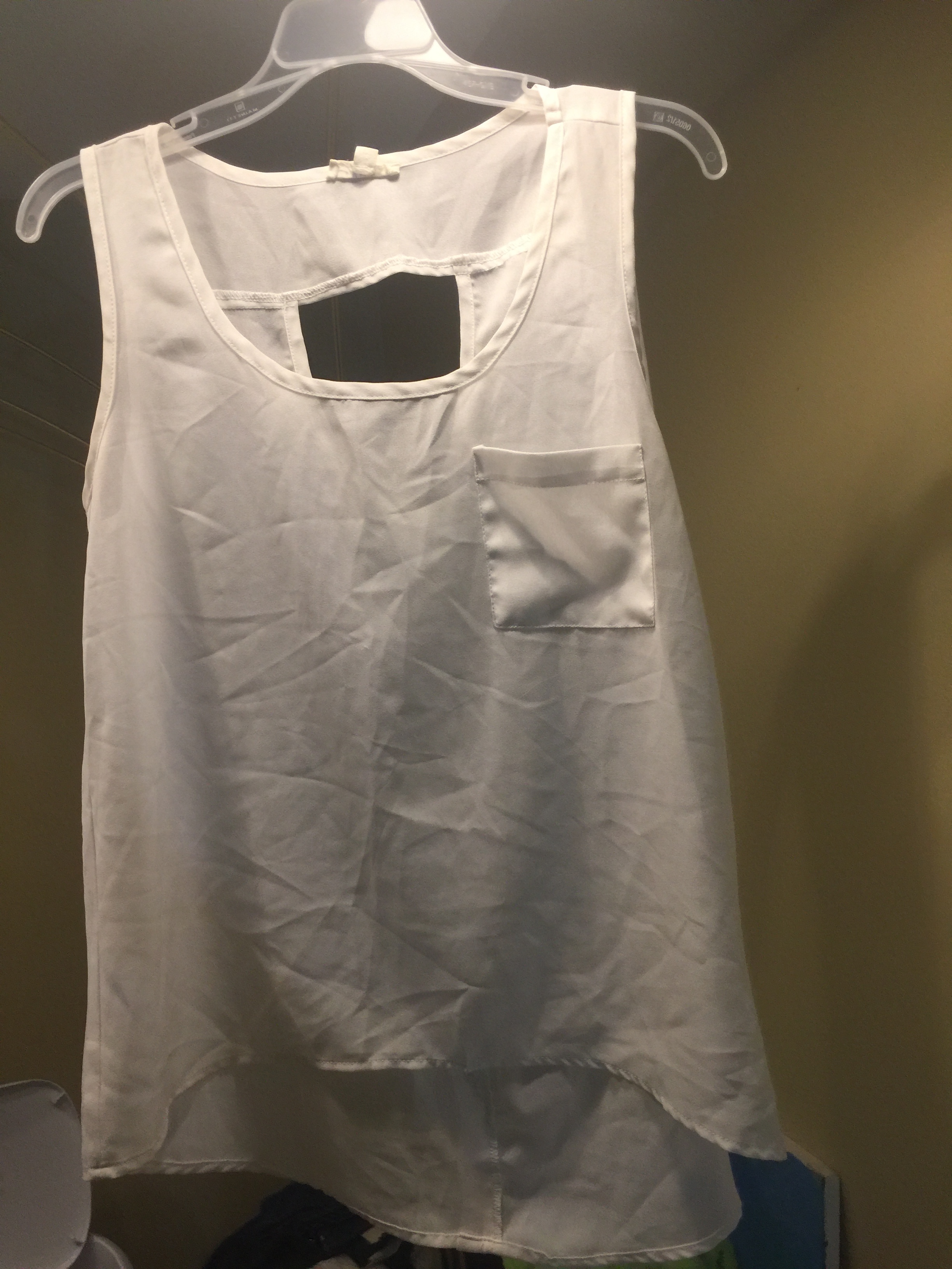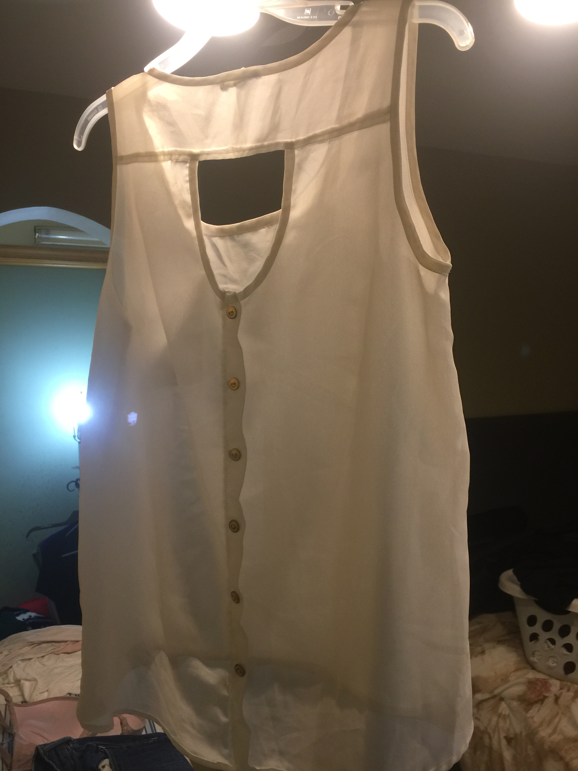 Mine medium white tank. Sheer so a tank should be worn underneath. Open back