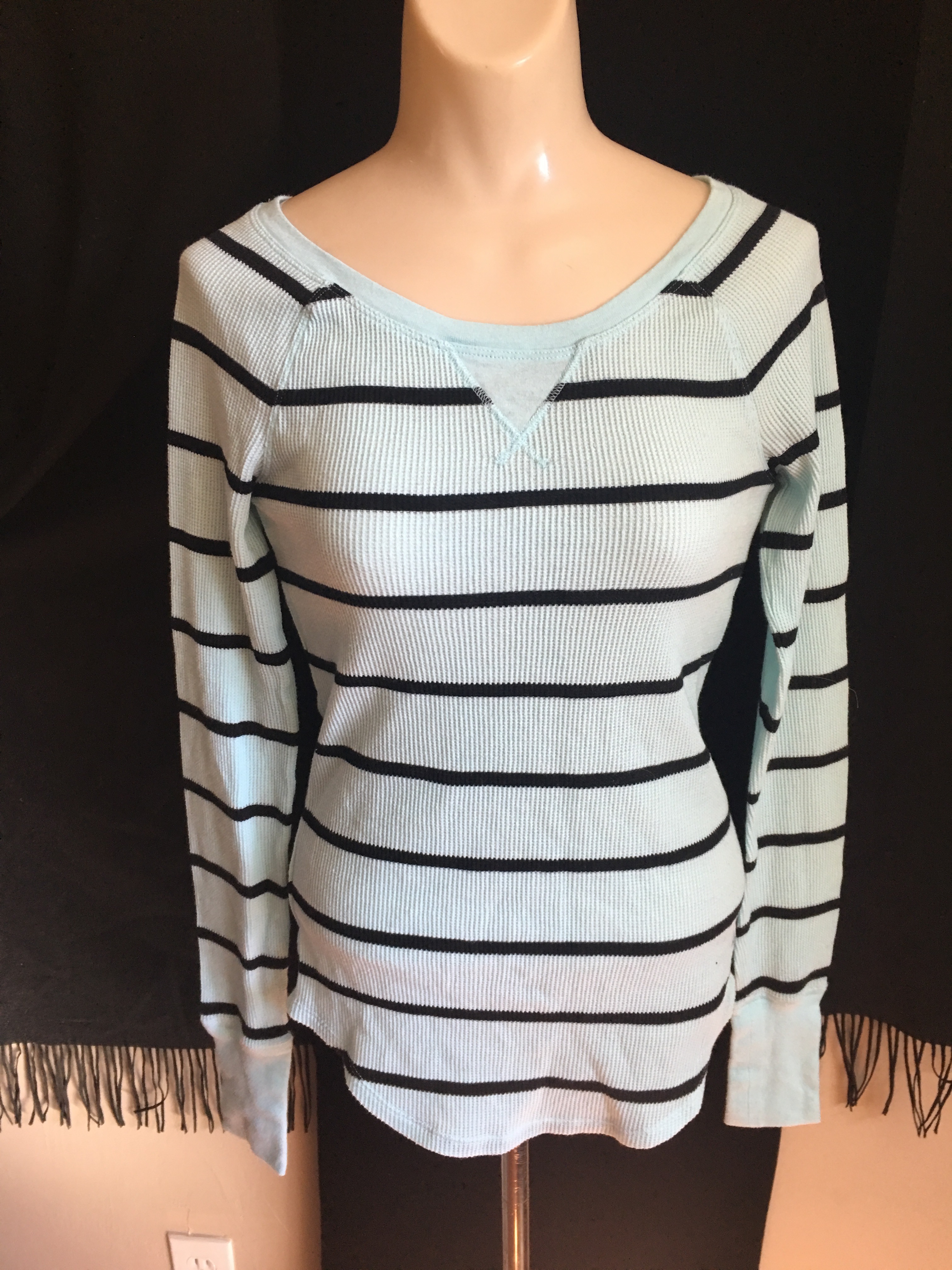 NWOT Victoria's Secret Pink thermal top. I bought this for my daughter for xmas but it was not the right color for her and I never exchanged it. The top is a lovely mint green with navy blue stripes.