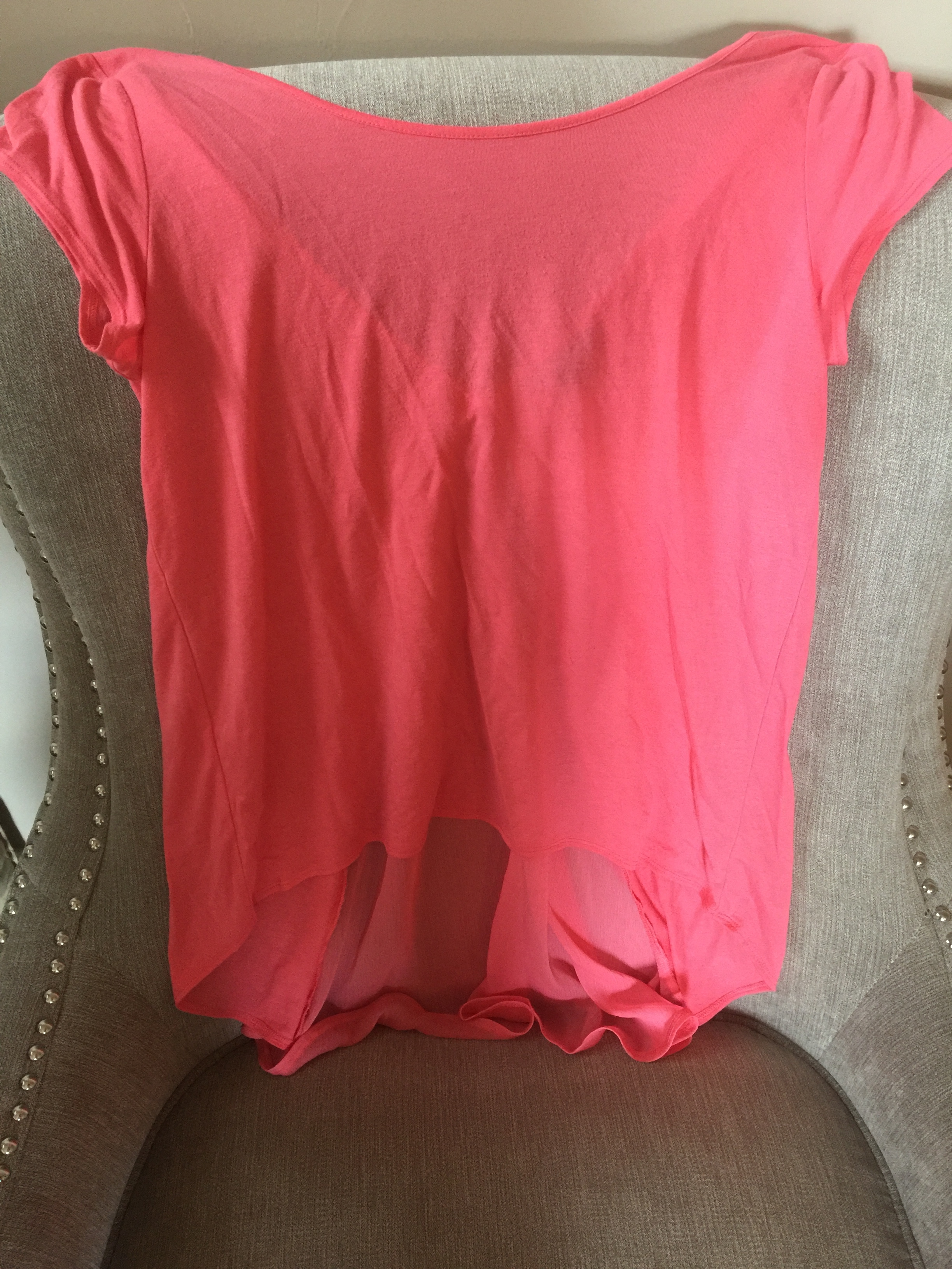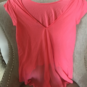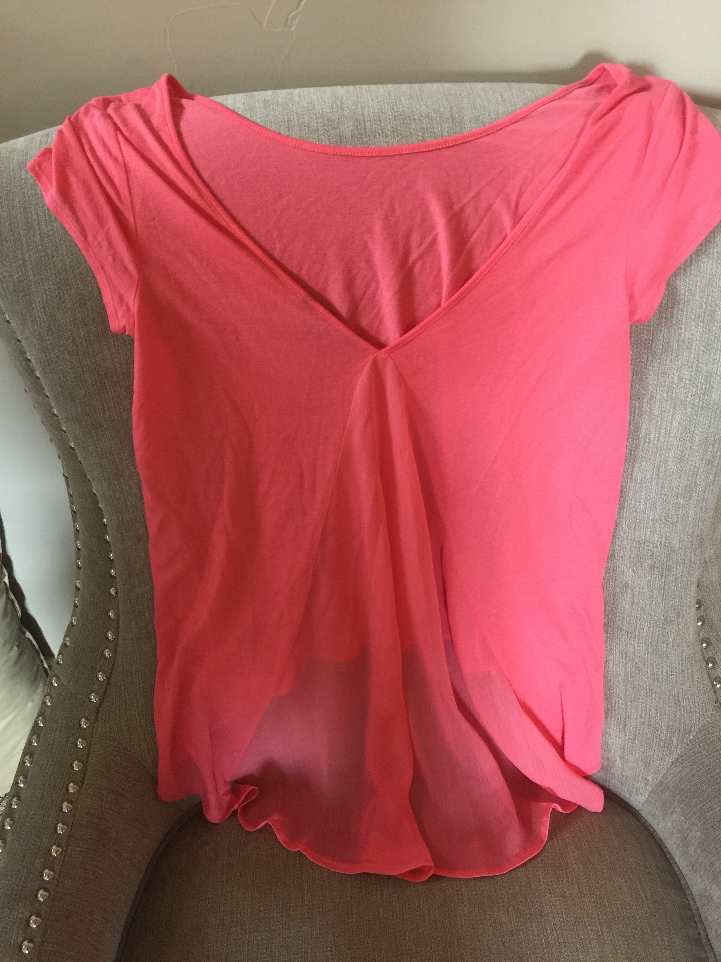 solid pink top with sheer panel on the back