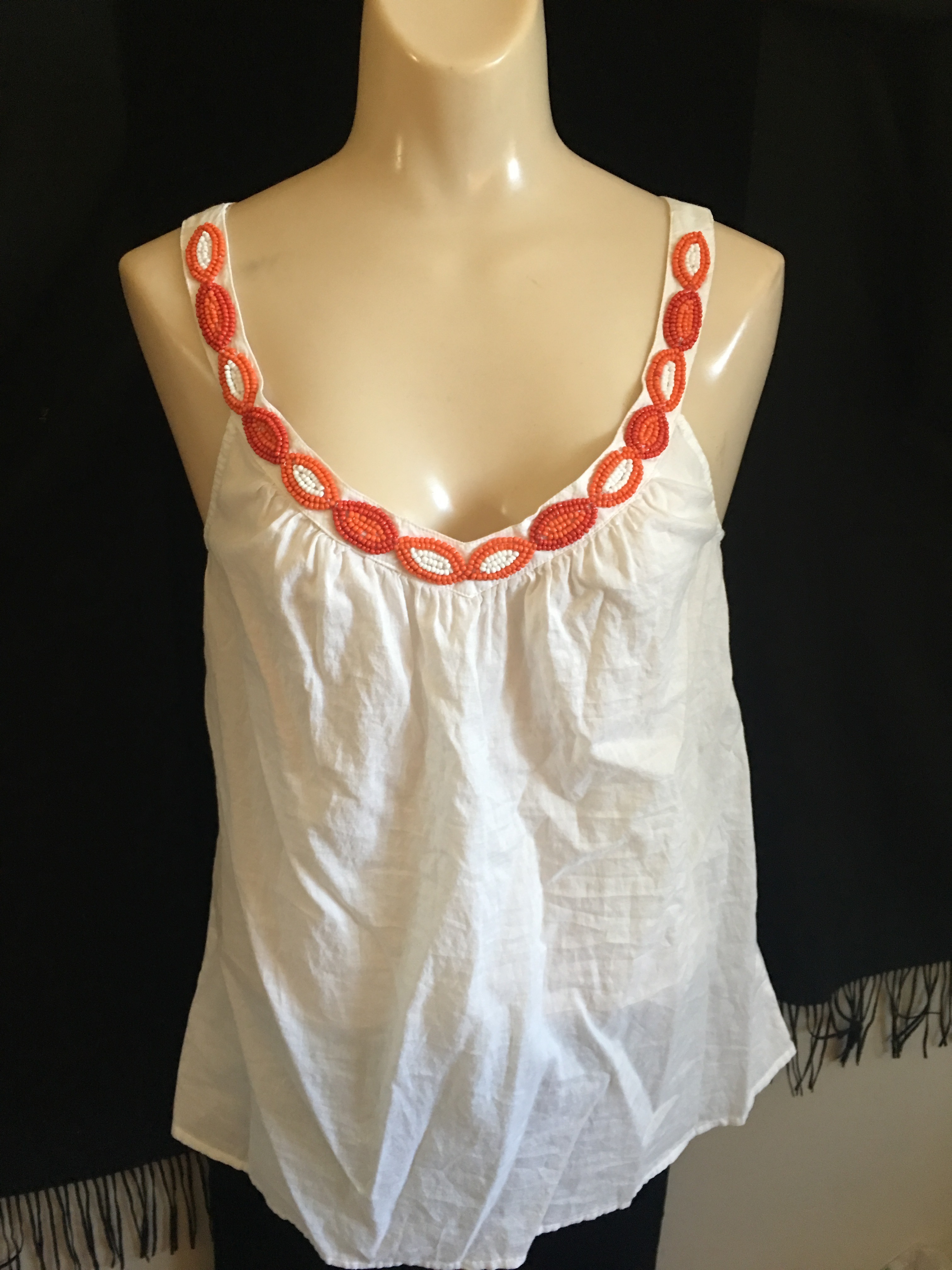 Lovely little orang and white beaded cotton summer blouse in size XS