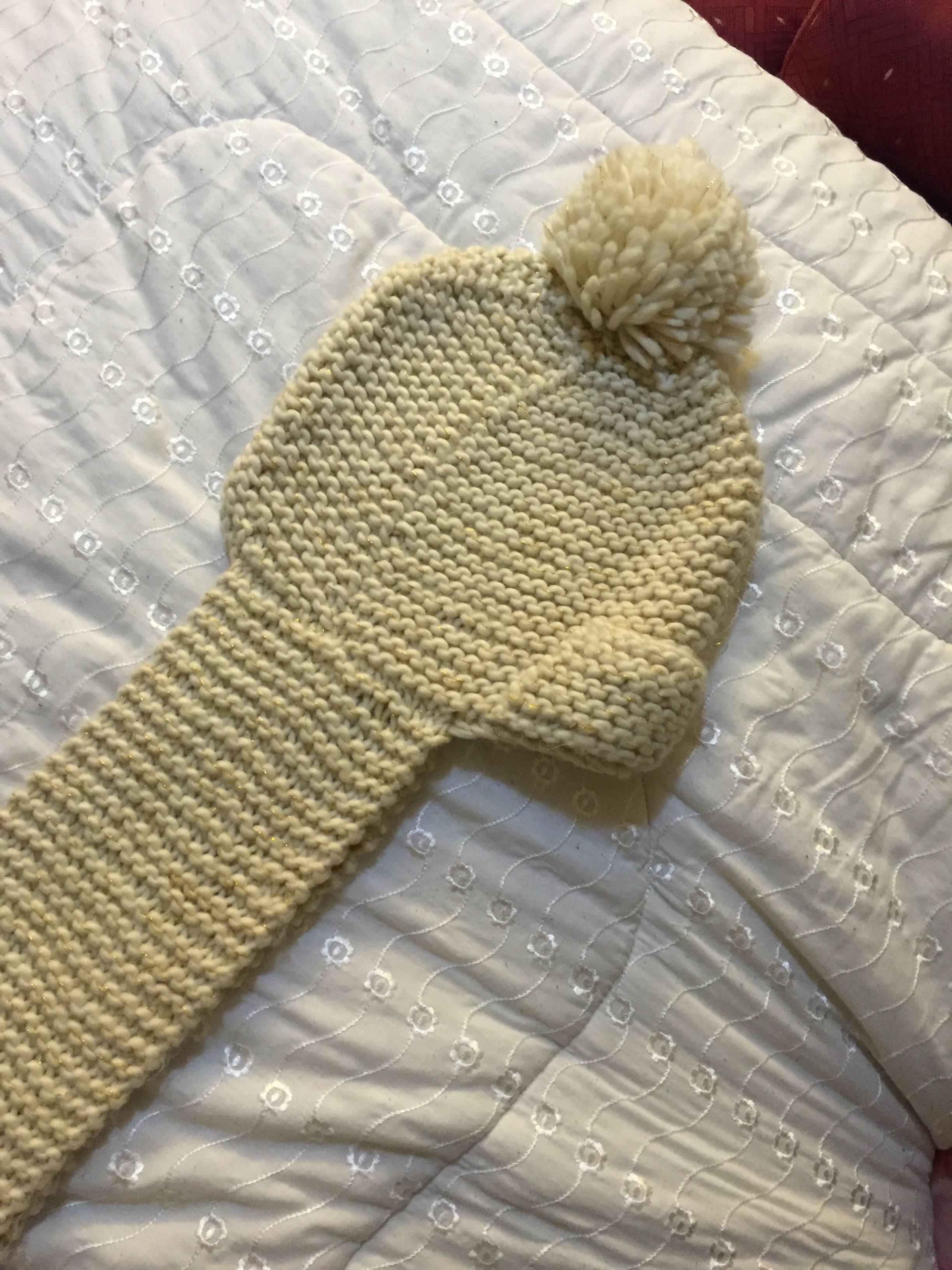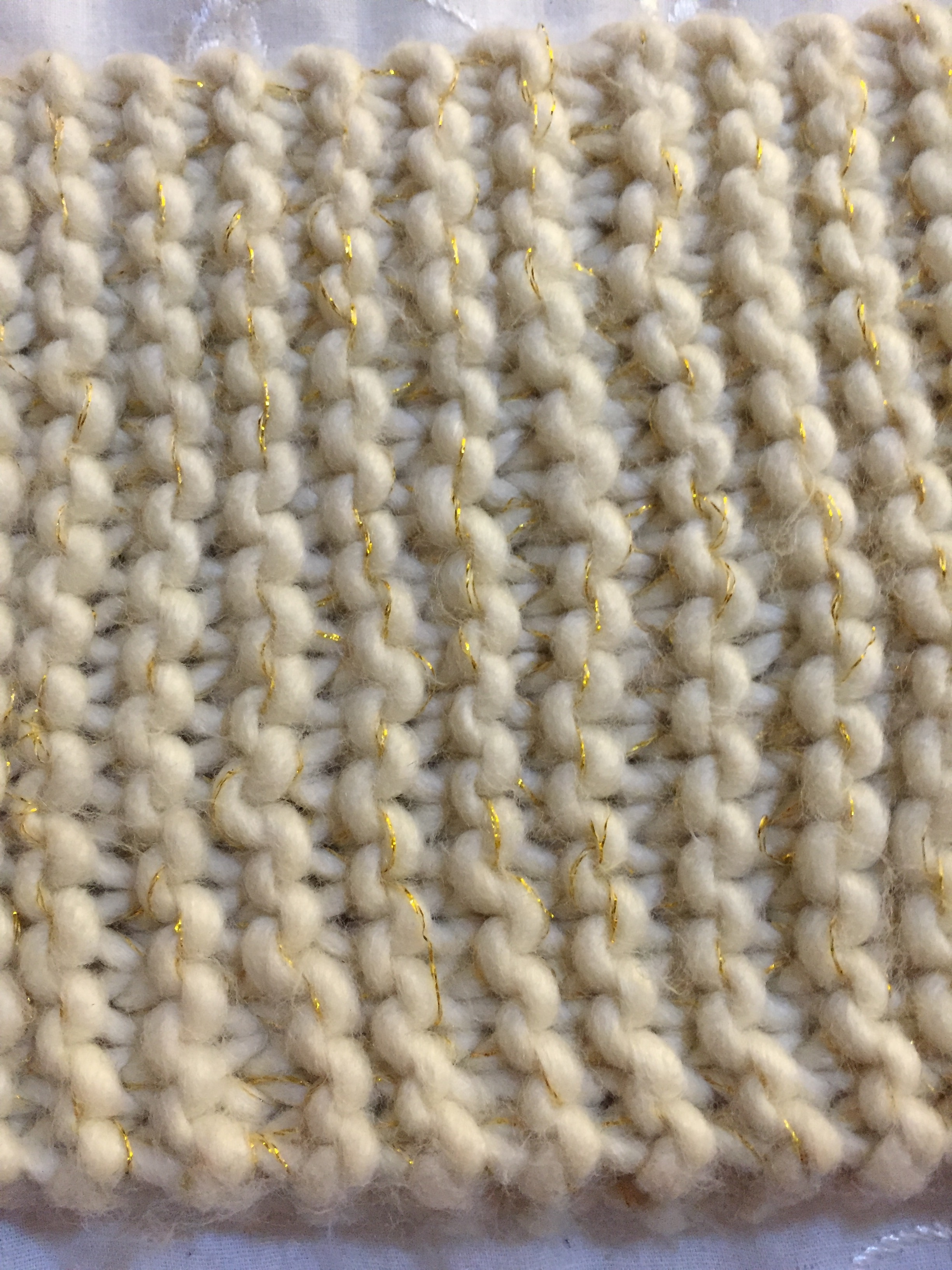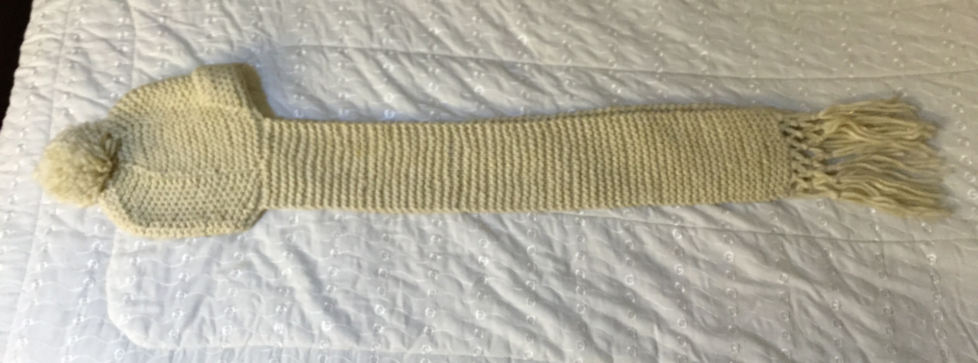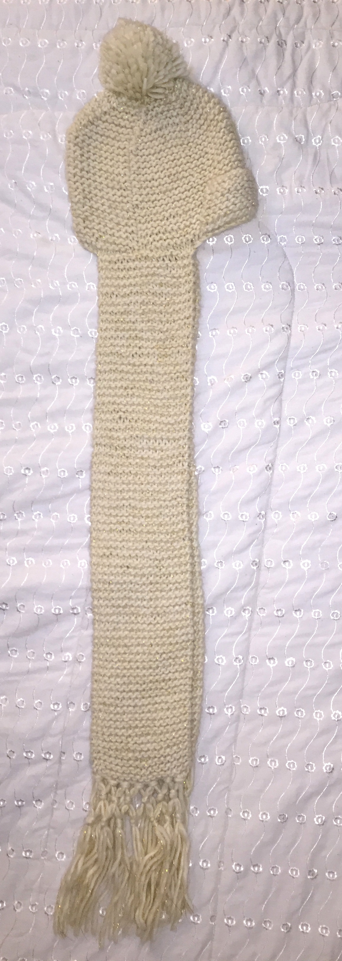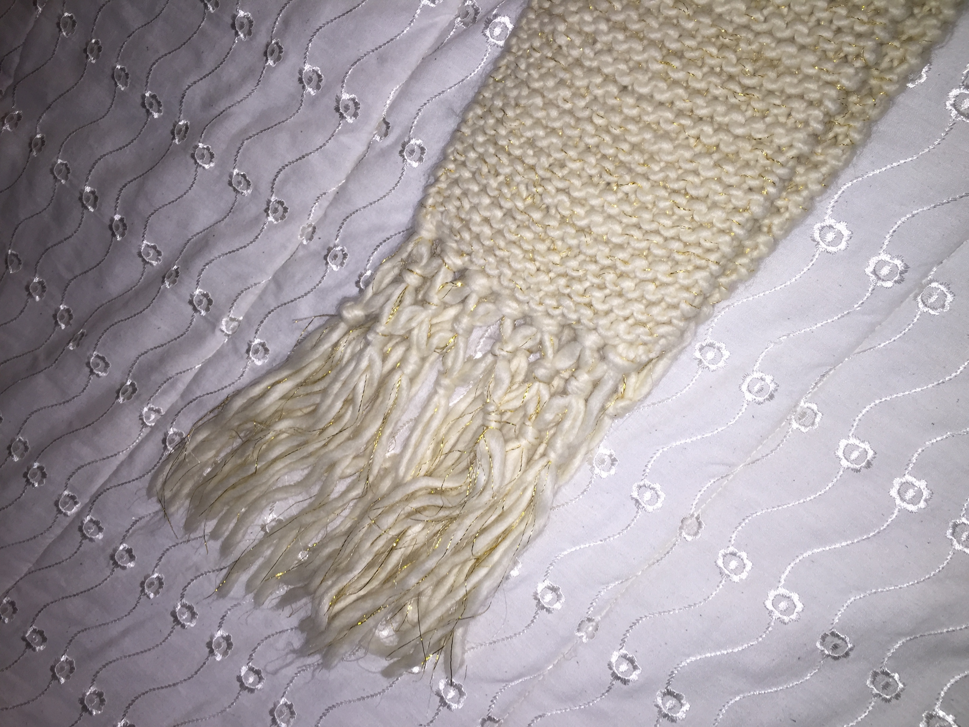Like new condition. Cream scarf with a little gold thread that gives it a subtle pop. Very warm :)